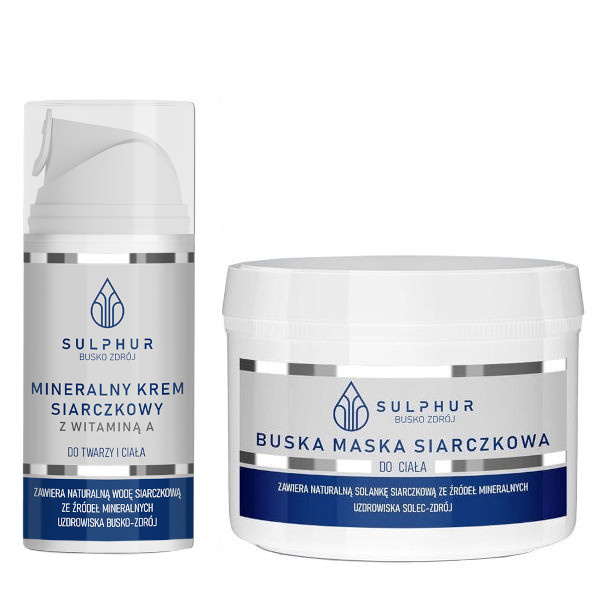 Sulphur Zestaw do skóry łuszczycowej (Mineralny Krem Siarczkowy 100 ml i Buska Maska Siarczkowa 200 g lub 500 g)